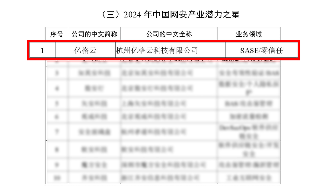 近日,中国网络安全产业联盟(CCIA)正式公布了2024年中国网安产业潜力之星榜单,共计10家企业入选。亿格云凭借SASE安全产品的技术创新与丰富的落地经验,荣获“2024年中国网安产业潜力之星”称号。