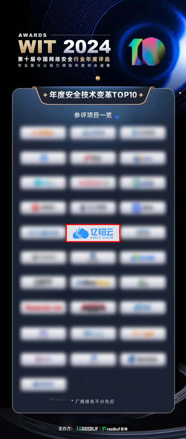 近日,国内知名网安媒体FreeBuf发布了第十届WitAwards 2024中国网络安全年度评选结果,亿格云凭借卓越的产品实力入选WitAwards 2024中国网络安全行业“年度安全技术变革TOP 10”。