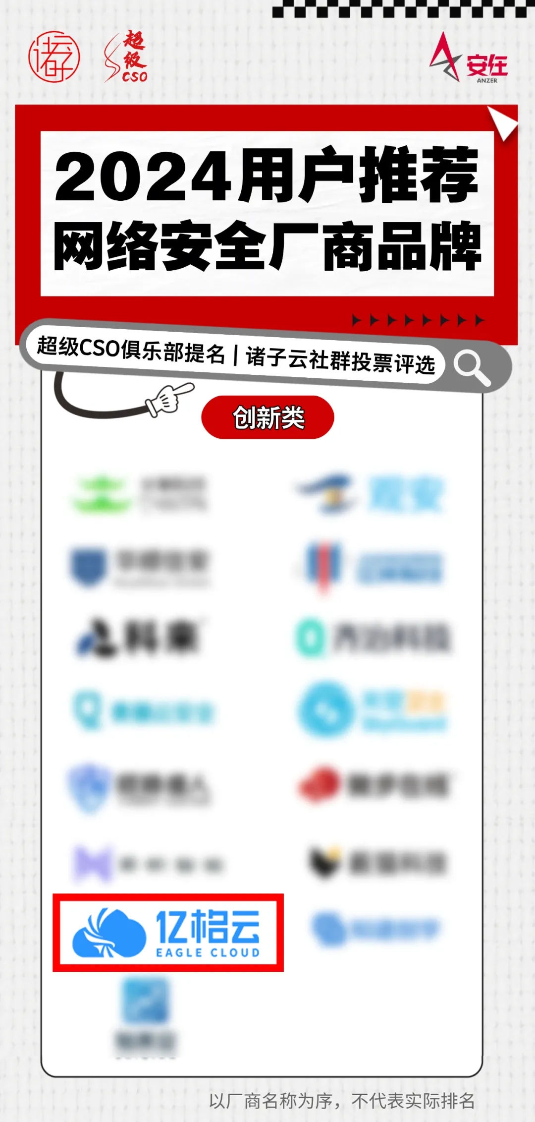 亿格云作为用户推荐的创新类网络安全厂商,今后也将更加致力于技术创新,不断提升产品和服务的质量,拓展更多应用场景,为客户提供更加安全、高效、可靠的办公安全解决方案!