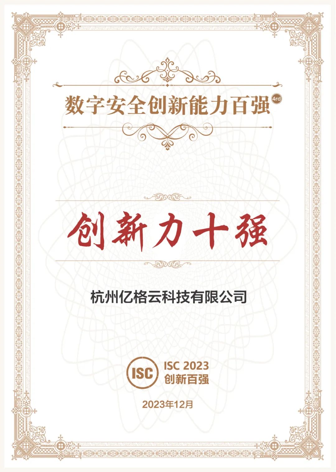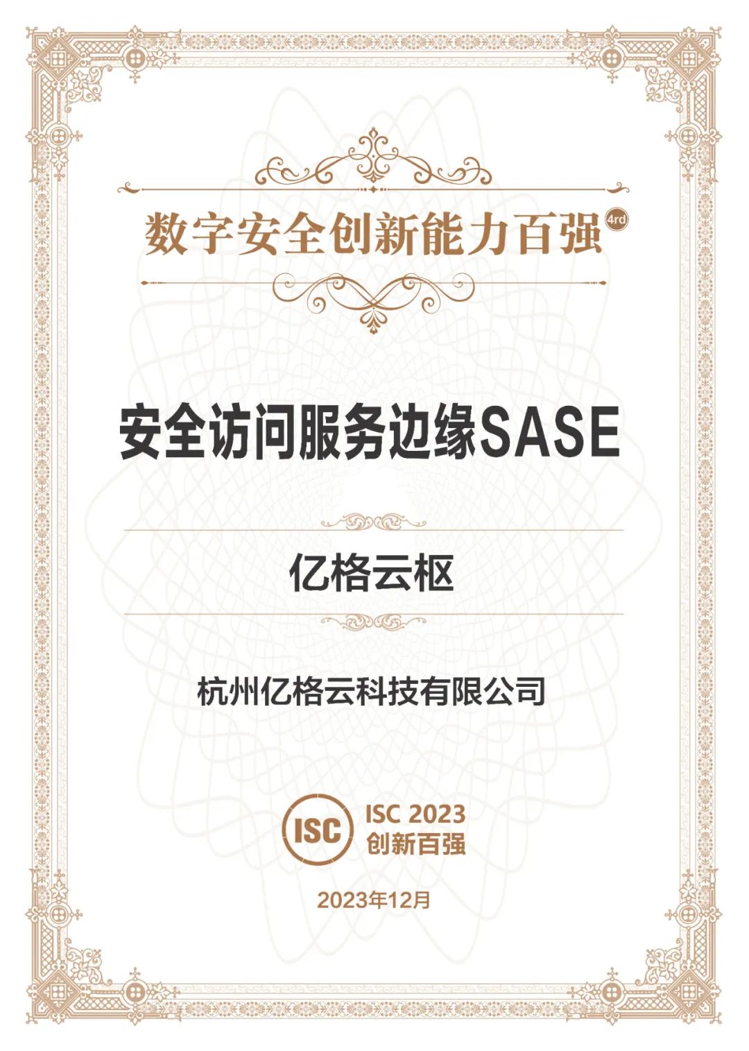 亿格云致力于办公安全领域的技术创新与服务提升,凭借创新产品——亿格云枢连续两年入围ISC 数字安全创新百强「创新力十强」、「安全访问服务边缘 SASE」榜单。