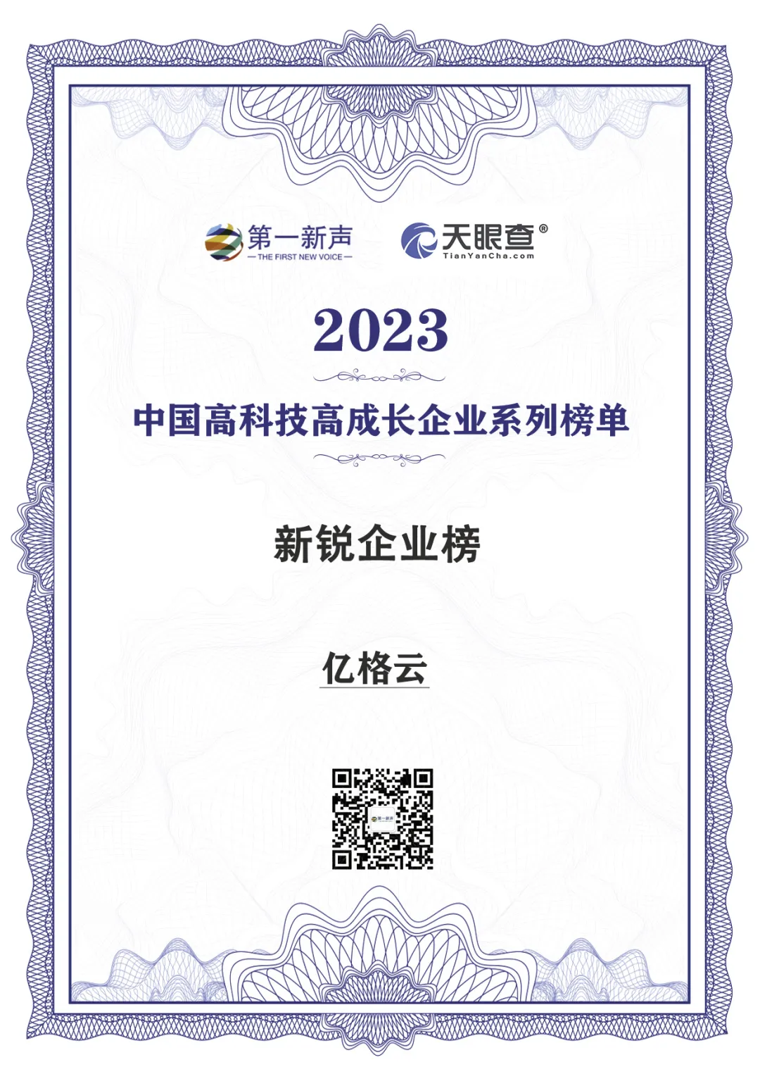 亿格云凭借在网络安全赛道,办公安全领域的卓越综合实力,在众多企业中脱颖而出,成功入选了“2023年中国高科技高成长新锐企业”。