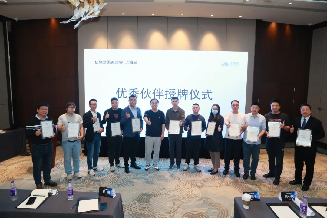 本次大会聚焦亿格云战略发展蓝图、产品方案、渠道合作政策等多个方向展开讨论。同时,大会现场还进行了优秀渠道合作伙伴的授牌仪式。