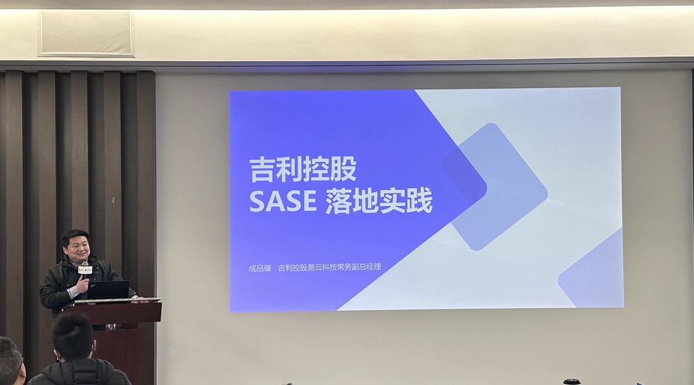 交流会重点部分是吉利控股易云科技常务副总经理 成品耀 先生进行《吉利控股SASE落地实践》的演讲分享。