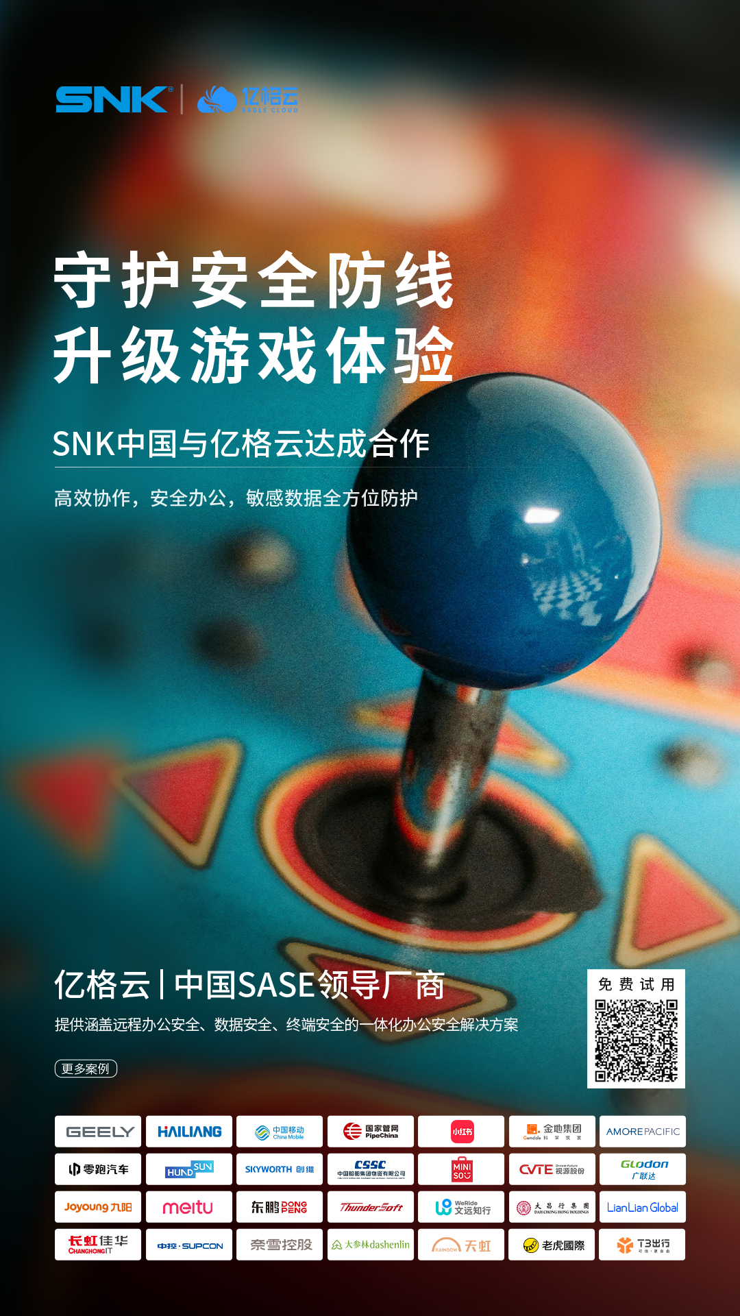 亿格云为SNK中国提供办公安全All In One方案,一端一平台整合零信任、网络准入、软件管理、DLP等多安全需求;SaaS化模式实现轻运维、快速上线,适配多云异构架构,保障更高稳定性!