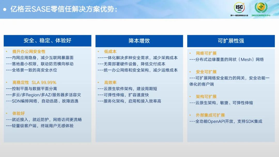 最后,葛岱斌向大家总结了亿格云零信任SASE安全解决方案的价值,总结为以下六点: