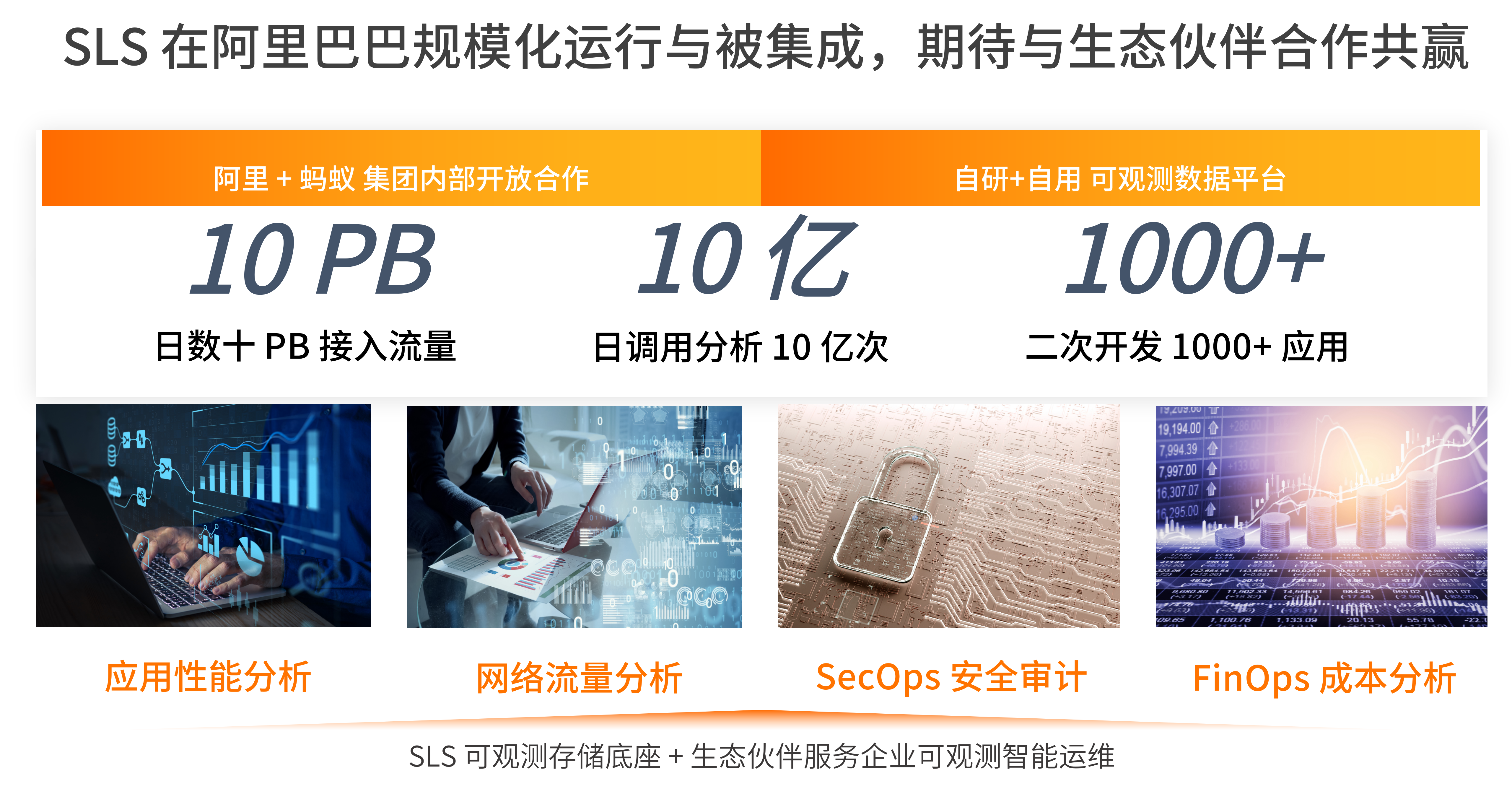 最后,豁朗 表示,目前阿里云日志服务SLS平台在阿里巴巴规模化运营和被集成,作为自研和自用的可观测数据平台,日接入数据超 10 PB,日调用分析超 10 亿次,接入二次开发应用数量超 1000 个。在应用性能分析、网络流量分析、安全审计和成本分析四个方面提供价值,未来,也期待与更多生态合作伙伴合作共赢!