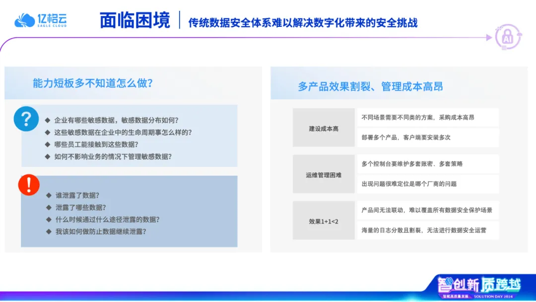 面对新的安全威胁,许多企业投入了大量资源构建安全体系,购置多种安全产品。然而,这些产品往往相互独立,难以形成有效的联防联控。这不仅导致安全效果不佳,而且带来高昂的建设和运维成本,严重影响员工体验和办公效率。
